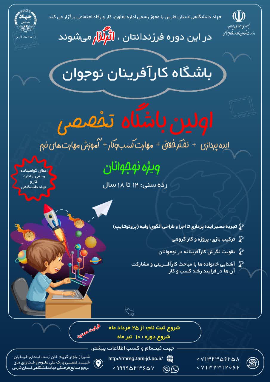 باشگاه کارآفرینان نوجوان به همت جهاد دانشگاهی استان فارس دقیقا با این هدف برای شما طراحی شده است.